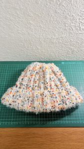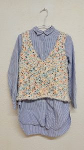 • 右一是第一次挑戰製作衣物的背心,使用棒針 / 輪針製作,線材使用在上鶴毛線購買的手混紗。