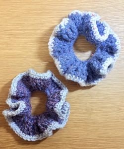- 右一是大腸髮圈,使用鉤針製作,線材使用在小熊媽媽、小珍珍手藝行、icolor買的毛線,目前成品送給家人使用。