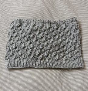 - 這是第二次挑戰看織圖製作的脖圍,使用了新針法,使用10號棒針 / 輪針製作,線材使用icolor買的毛線,材質是壓克力纖維。預計送給照顧自己的親戚使用。